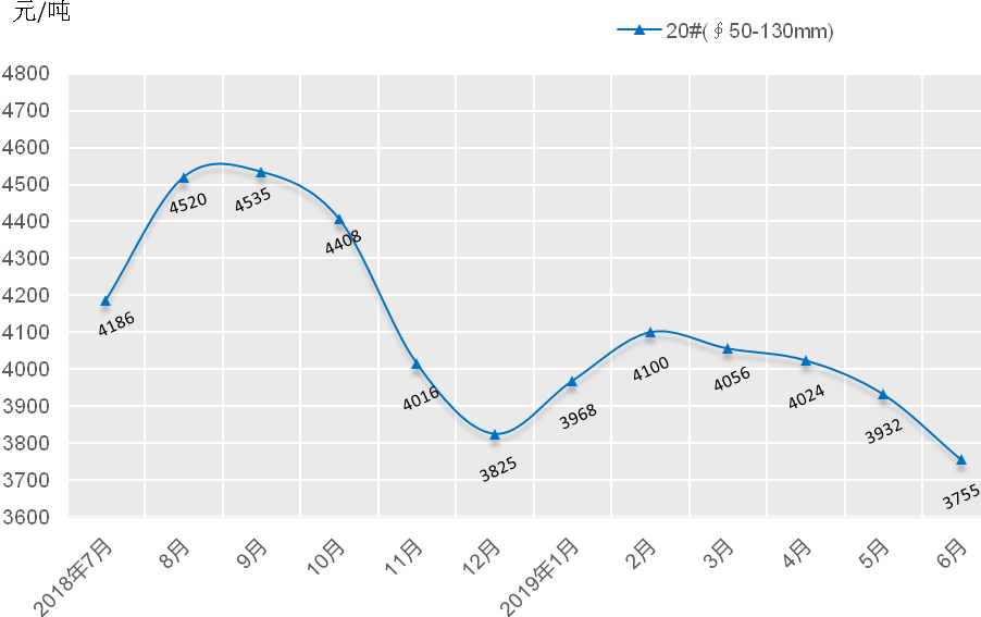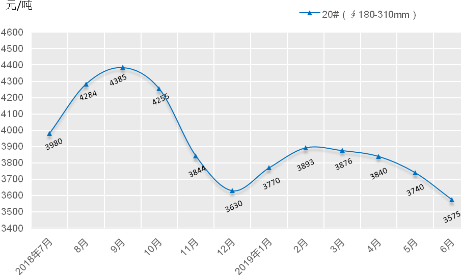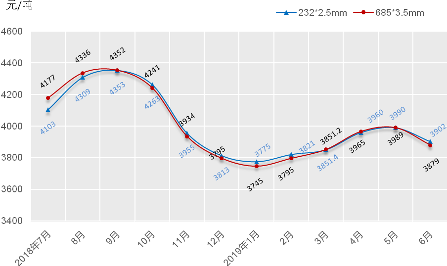 20187月-20196月聊城热轧管坯月平均价格(元/吨)